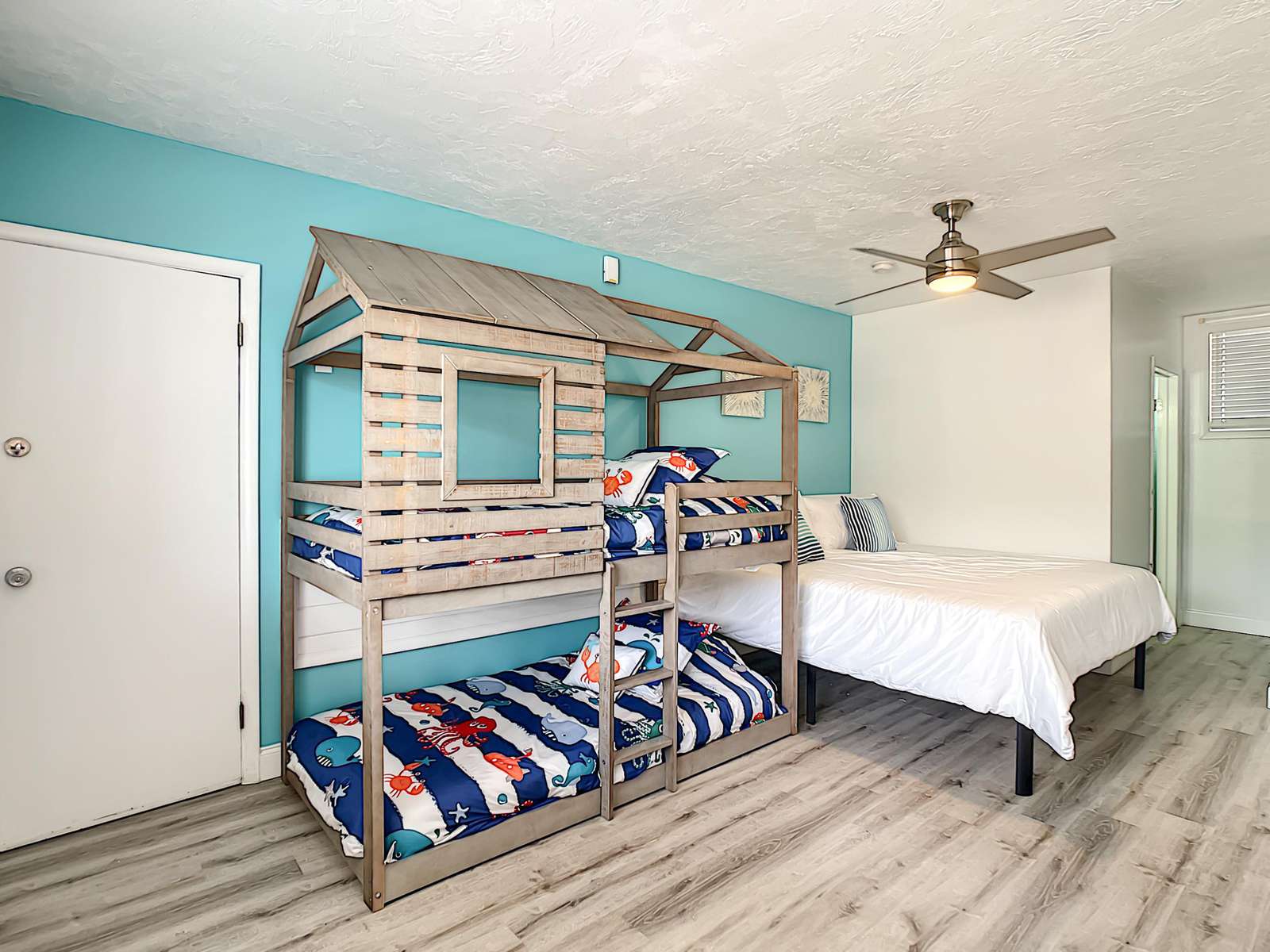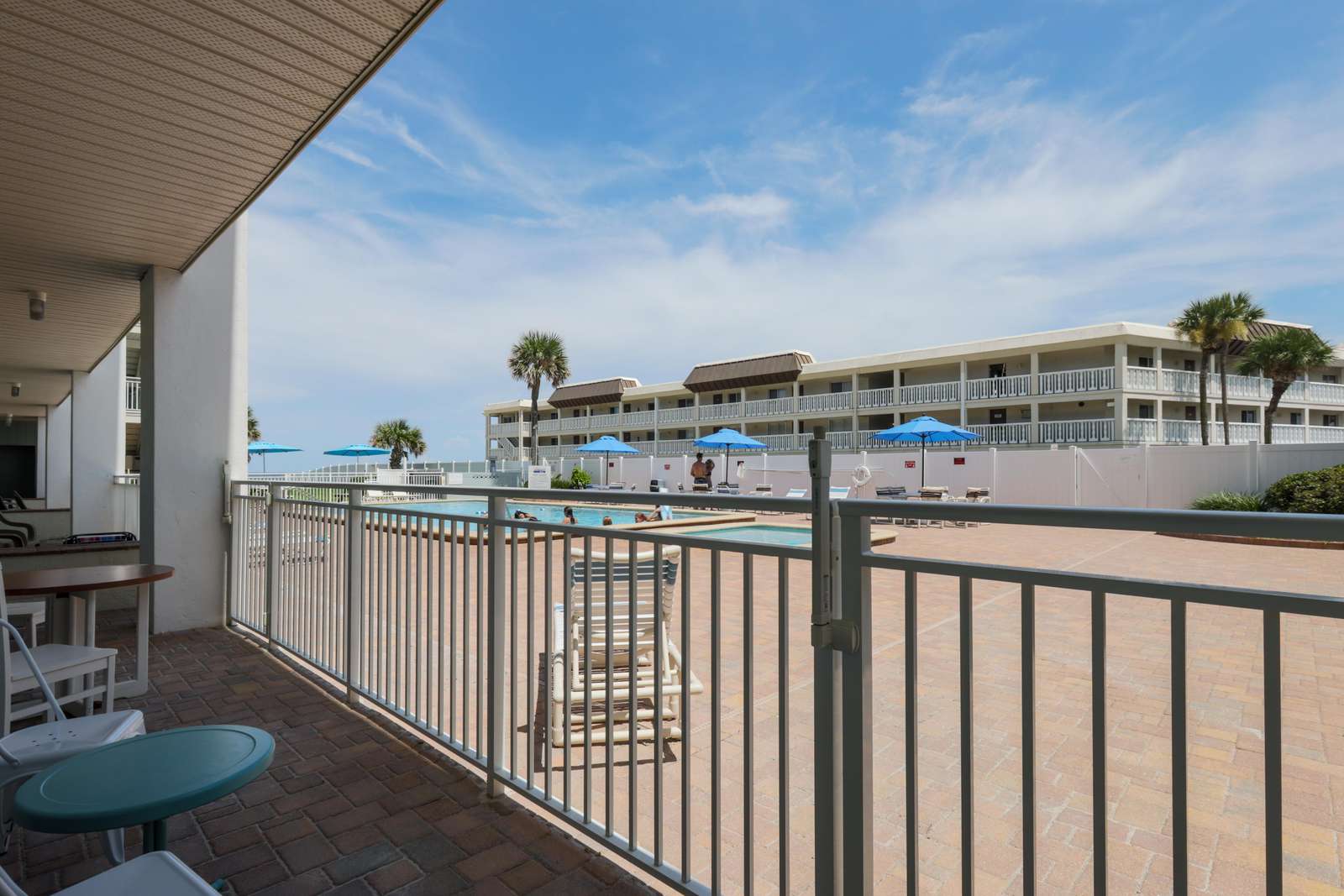This charming first-floor studio is ideal for a small family looking for a fun and easy getaway. Kids will love the playful bunk beds, while adults can stretch out and relax in the spacious king bed. Step out to the front patio to unwind while keeping an eye on the pool—perfect for watching the little ones splash and play.