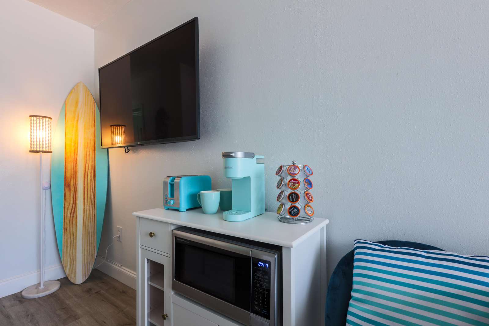 Inside, you’ll find a cozy seating area, a smart TV with cable, and a convenient kitchenette equipped with a mini-fridge, microwave, and Keurig coffee maker. Need more room? Combine this unit with neighboring Unit 104 to create a two-bedroom, two-bath retreat that sleeps up to six—just ask the host for details.