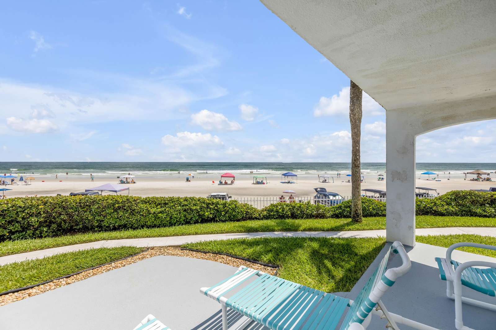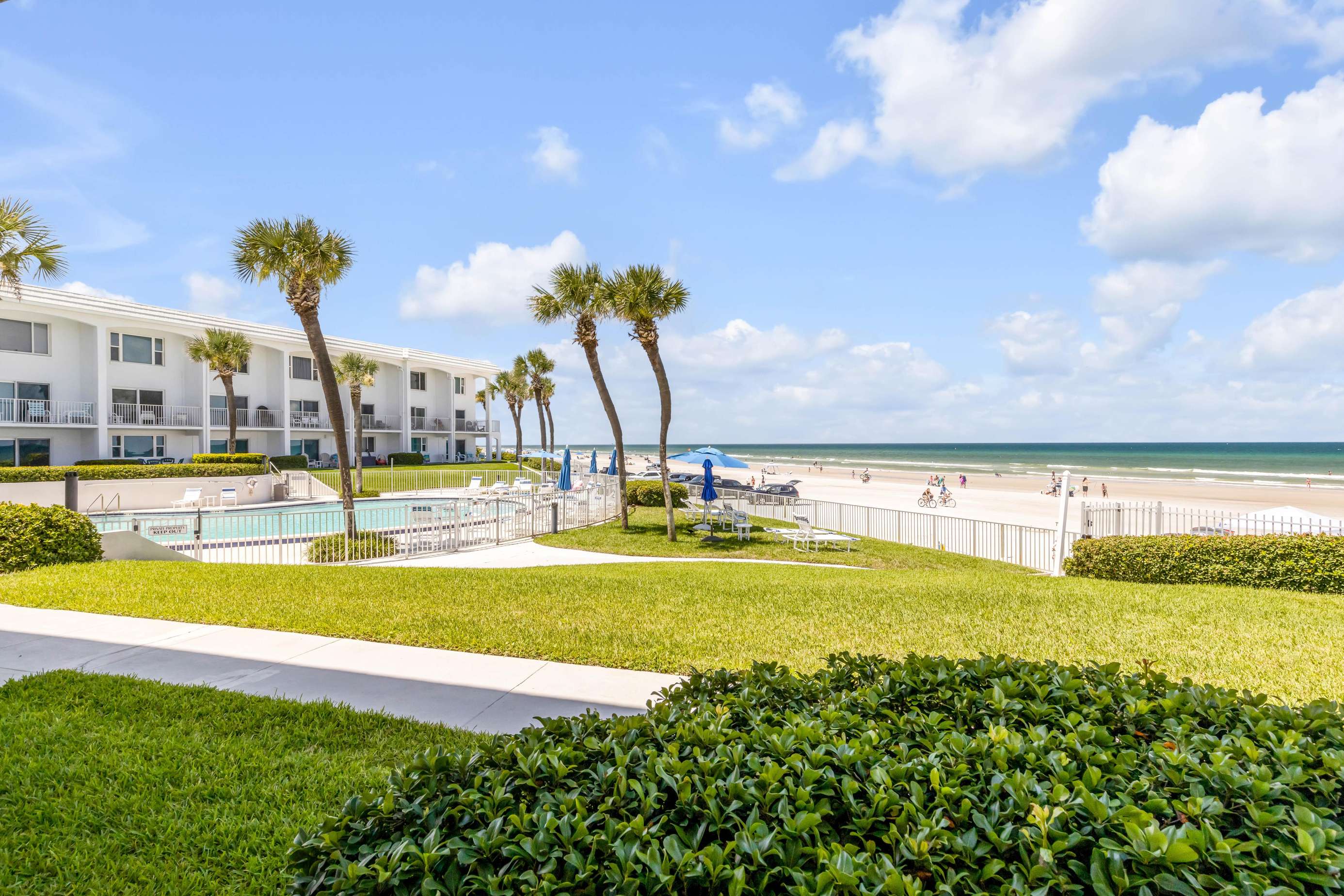 Experience serene oceanfront living at Holiday Cove South, a stylish 2BR retreat in New Smyrna Beach. Enjoy stunning balcony views, a refreshing pool, and easy beach access just steps away.